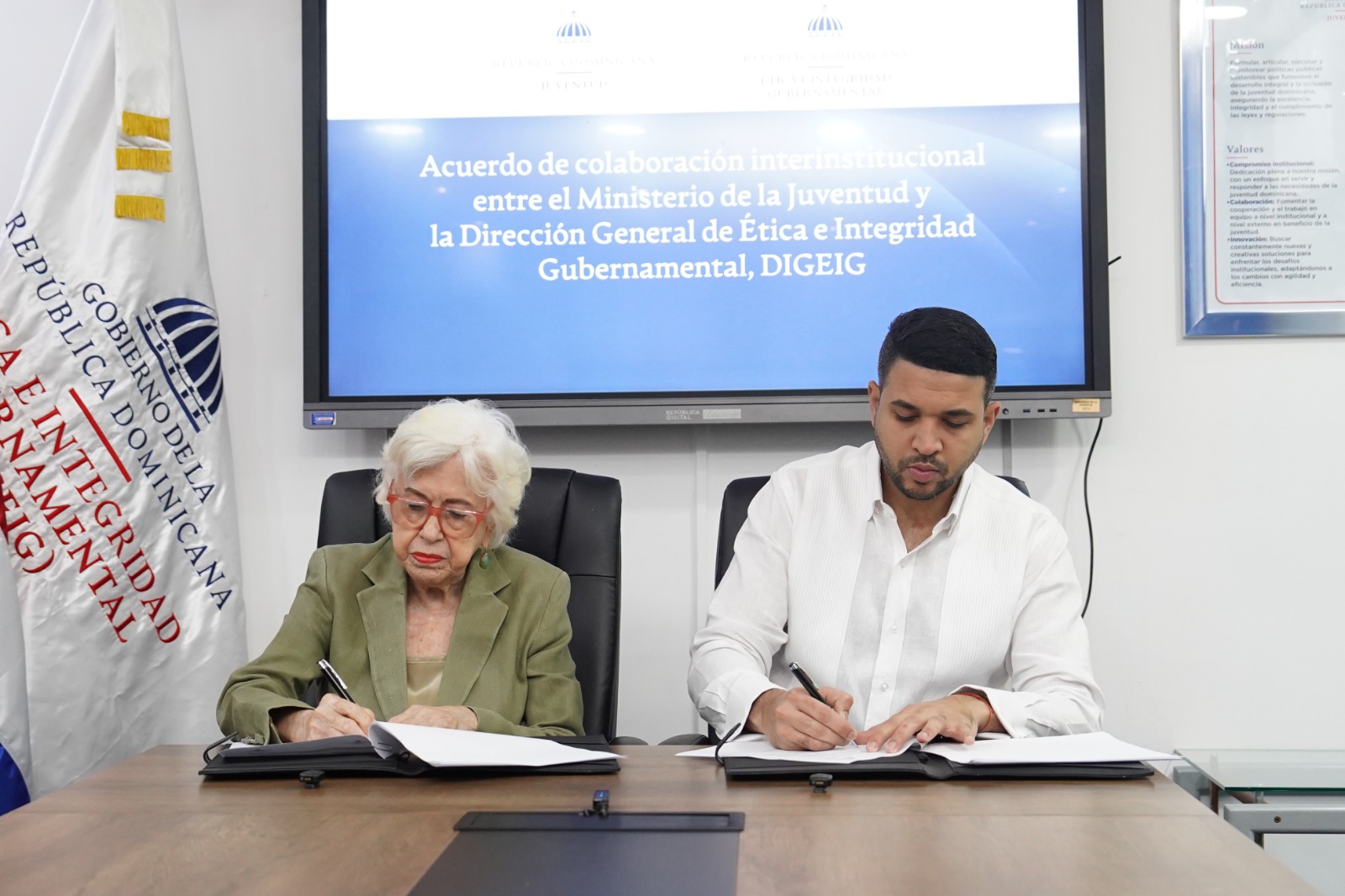 Santo Domingo. Próximo a celebrarse el natalicio de Ulises Francisco Espaillat, referente del pensamiento moral y cívico dominicano, la Dirección General de Ética e Integridad Gubernamental (DIGEIG) y el Ministerio de la Juventud firmaron un acuerdo de cooperación interinstitucional para fortalecer, capacitar, certificar y expandir a nivel nacional el Programa de Embajadores de la Integridad Juvenil.