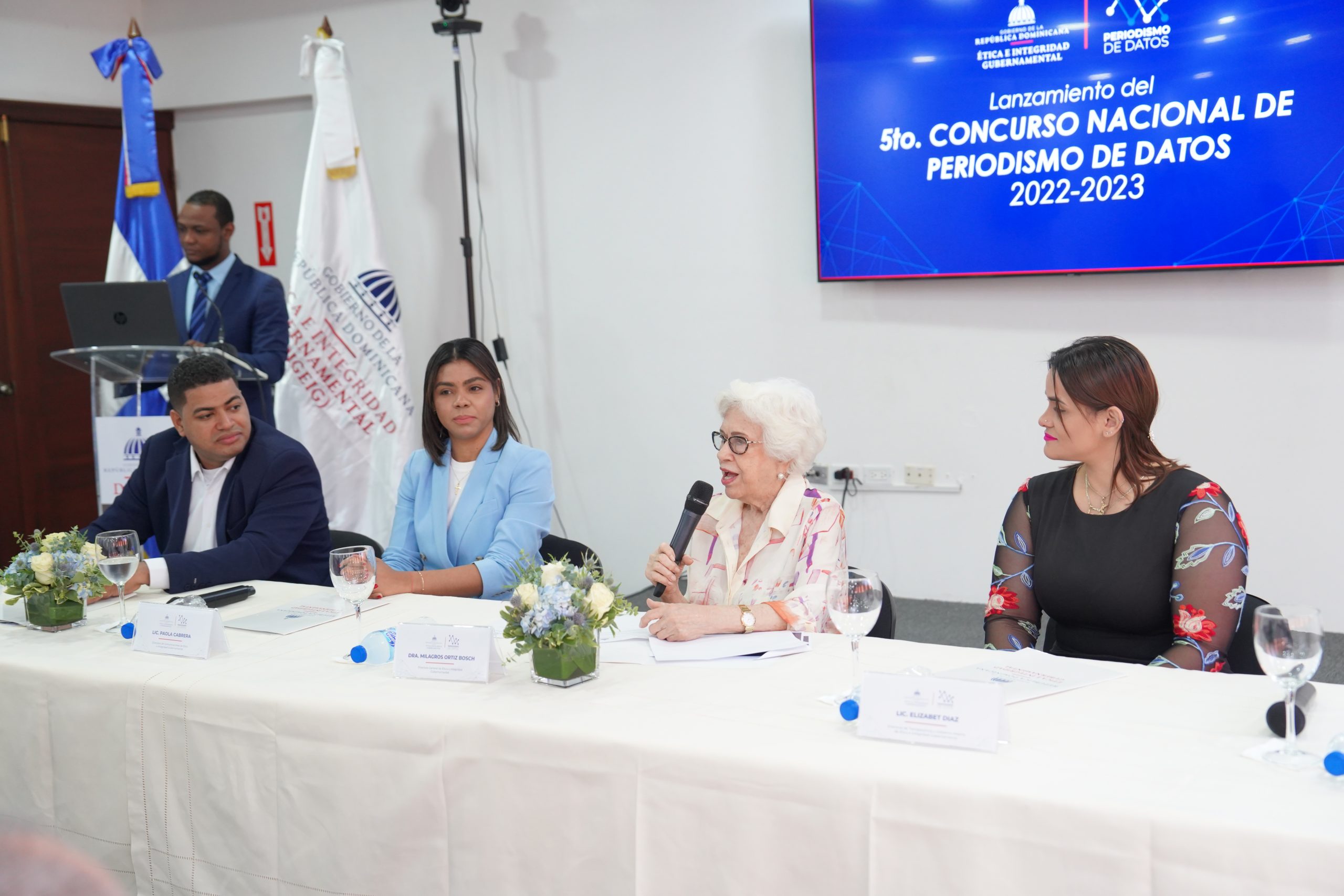 La doctora Milagros Ortiz Bosch, directora General de la DIGEIG, hace un llamado a los trabajadores de la prensa nacional a participa la 5ta. Versión del Concurso, ejerciendo su derecho a saber a través de los portales del Estado dominicano y comunicar a los ciudadanos las acciones del gobierno, aportando con sus trabajos líneas de diseños de políticas públicas.