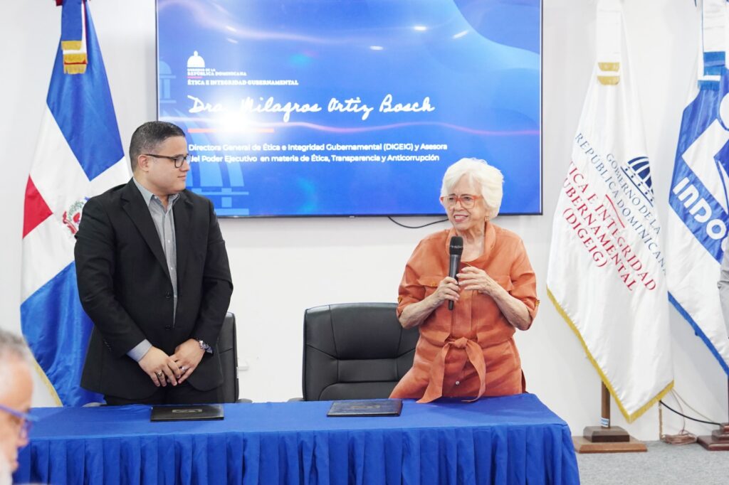 Durante la firma de este acuerdo, la directora general de la DIGEIG, doctora Milagros Ortiz Bosch, Resalto que con este convenio se marca la pauta para la cooperación interinstitucional, asegurando que esto reafirma el compromiso del gobierno con la ética, la integridad y transparencia en el país.